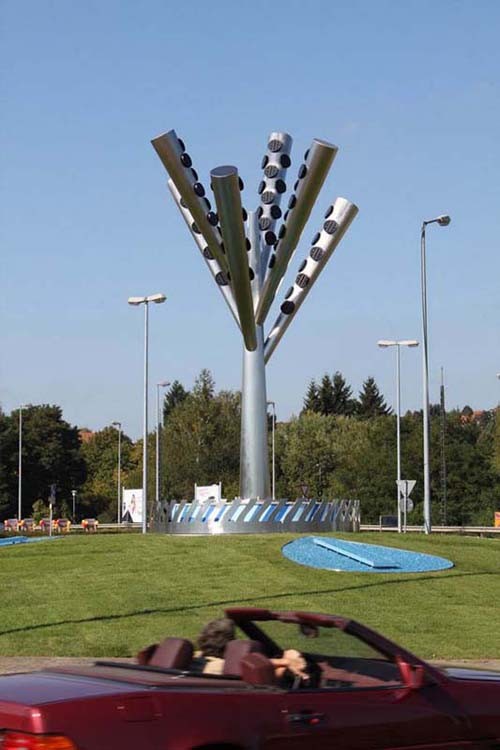 Wozu dient das Loch im Donut? Die gleiche Frage lässt sich auch bezüglich der Mitte eines Verkehrskreisels stellen. Die Wahrnehmung des sich dem Kreisel Annähernden fokussiert auf seine unerreichbare Mitte. Durch die Unerreichbarkeit ist die Gestaltung auf die Kunst oder den landschaftsgärtnerischen Ausdruck zurückgeworfen. Jeder, der den Kreisel fährt, wird mit einer gestalteten Mitte konfrontiert, gleich einem Zuschauer einer Arena und der in ihr stattfindenden Handlung. Der Alltagsraum wird umspült von Voyeuren, eine Abstinenz des kulturell bespielten Orts wie bei einem Museum ist nicht möglich. Wenn das Dargestellte von Erwartetem oder Gewöhnlichem abweicht, dann wird unausweichlich eine Auseinandersetzung folgen, die in Zustimmung oder Ablehnung endet.